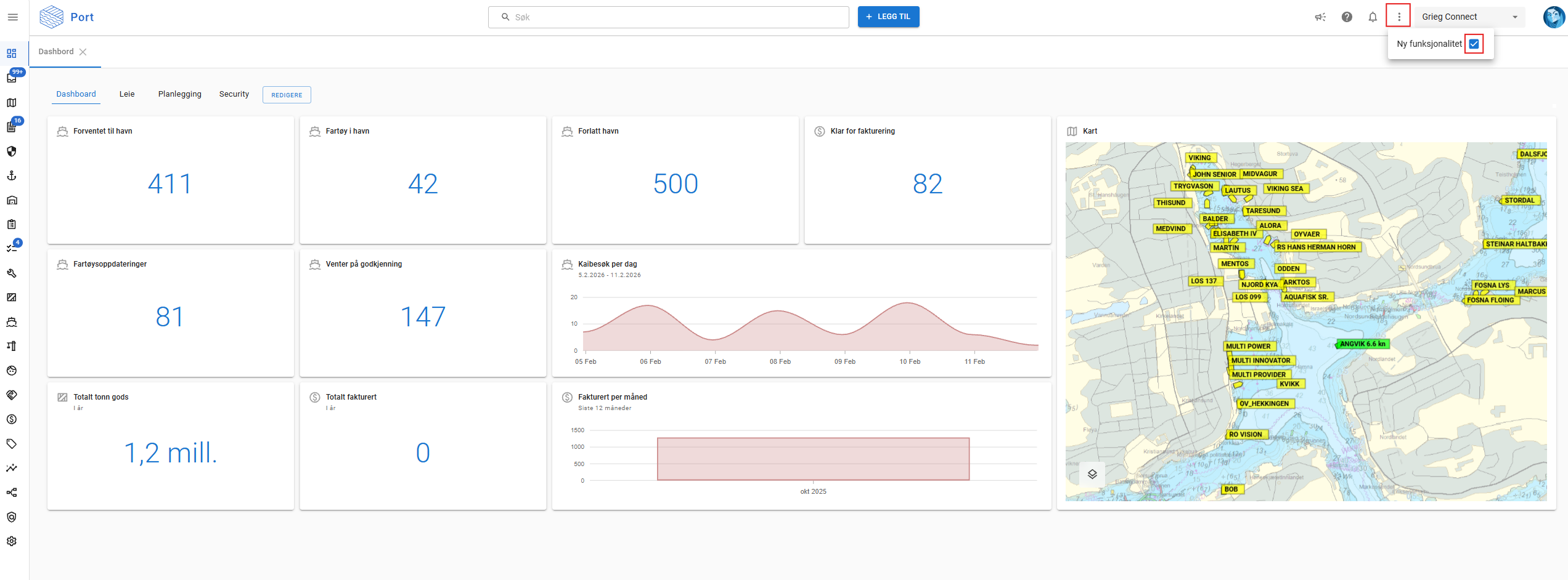 Alle nye kunder bruker i dag kun ny funksjonalitet. For kunder som har brukt Port over lengre tid, finnes det fortsatt en kombinasjon av gammel og ny funksjonalitet, styrt av et brukerflagg i systemet.