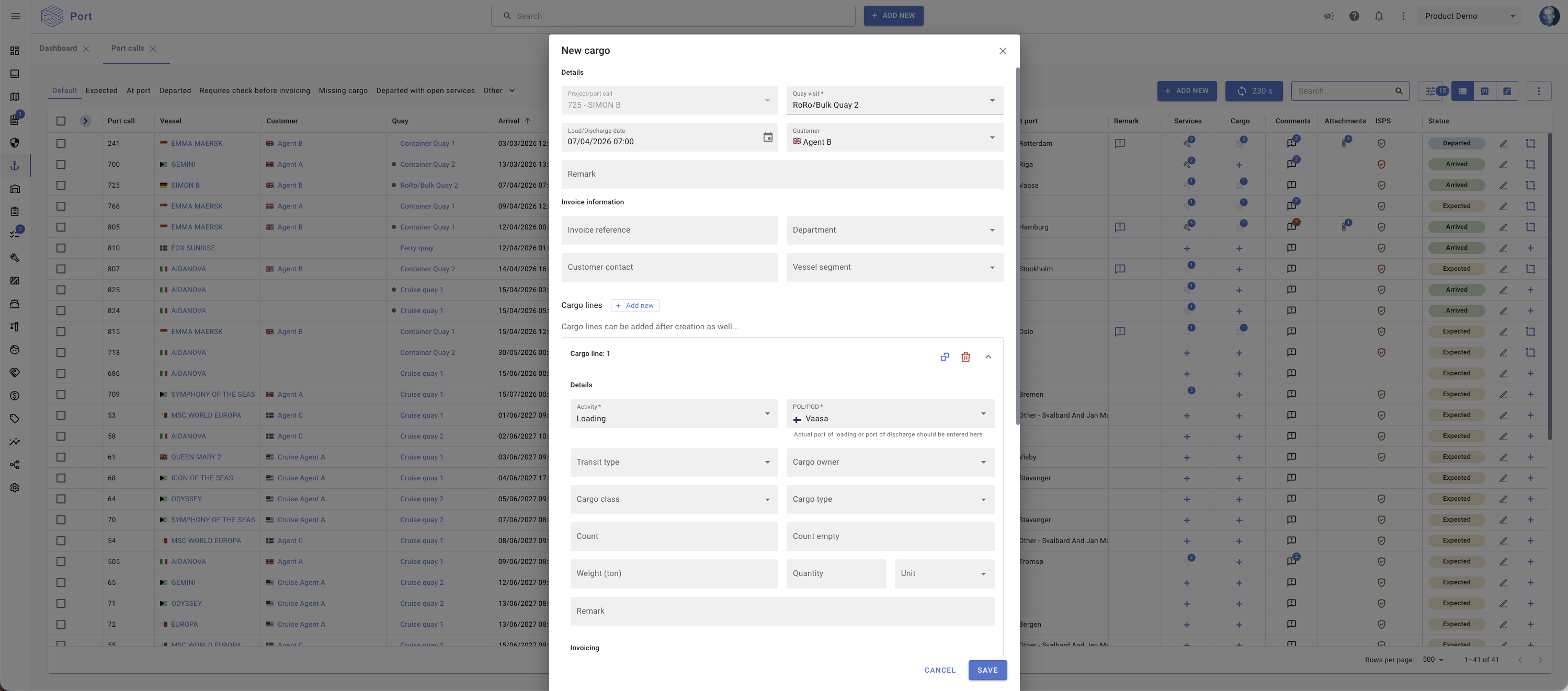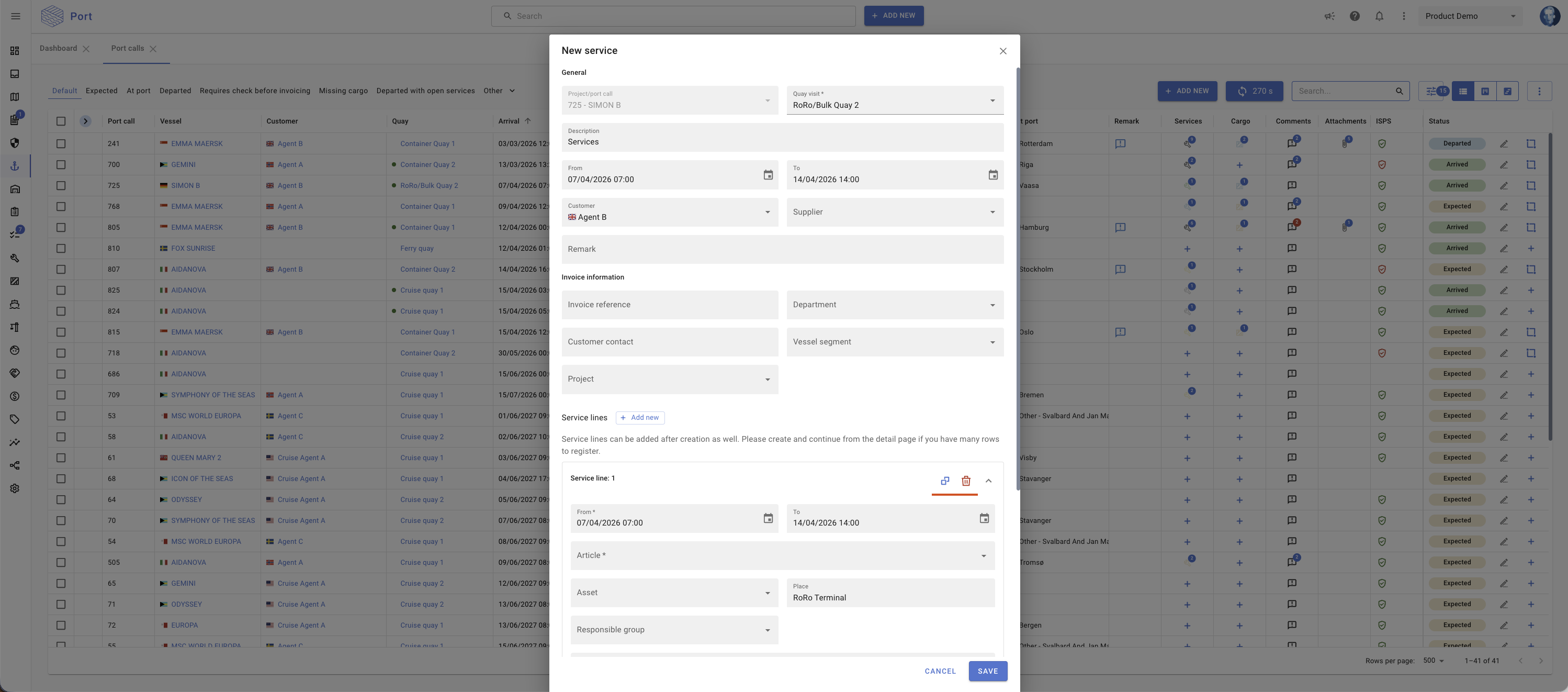 This applies when creating new services or cargo from port calls, from the main menu, or via the + button in the port call lists.