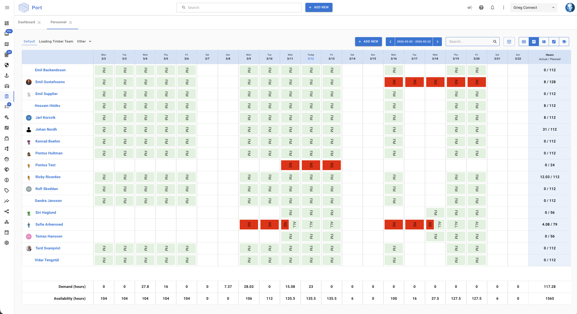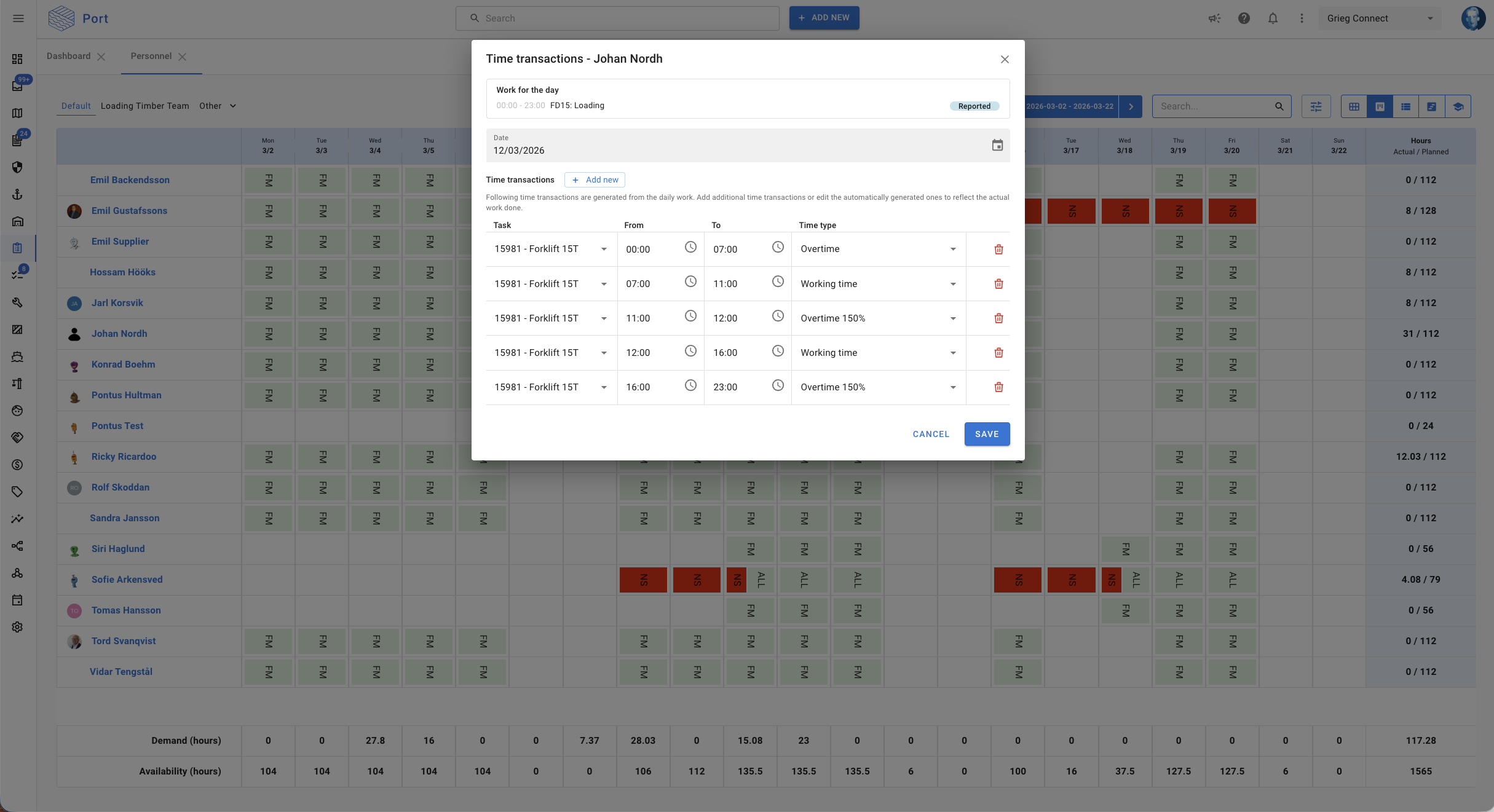 The personnel view has been updated with several improvements for planning and tracking working time.